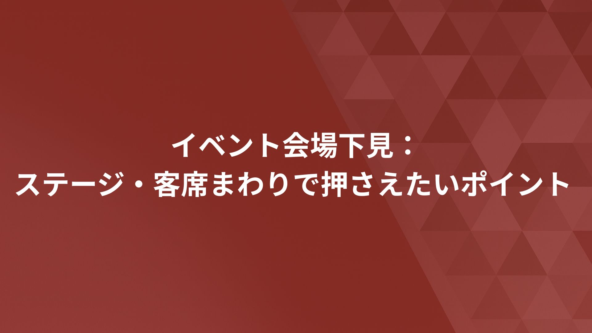イベント会場下見:ステージ・客席まわりで押さえたいポイント
